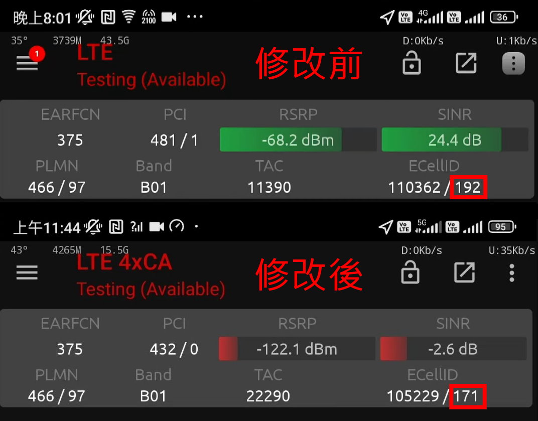 | 實測+回報 | 2024/10/28 | 參數調整 | 台哥大 | 全區 | 多數 | sib5重選優先級調整,改為Band 7 = 6;Band 1/3/28 = 4;Band 8 = 3 | ||||||||||||||||||